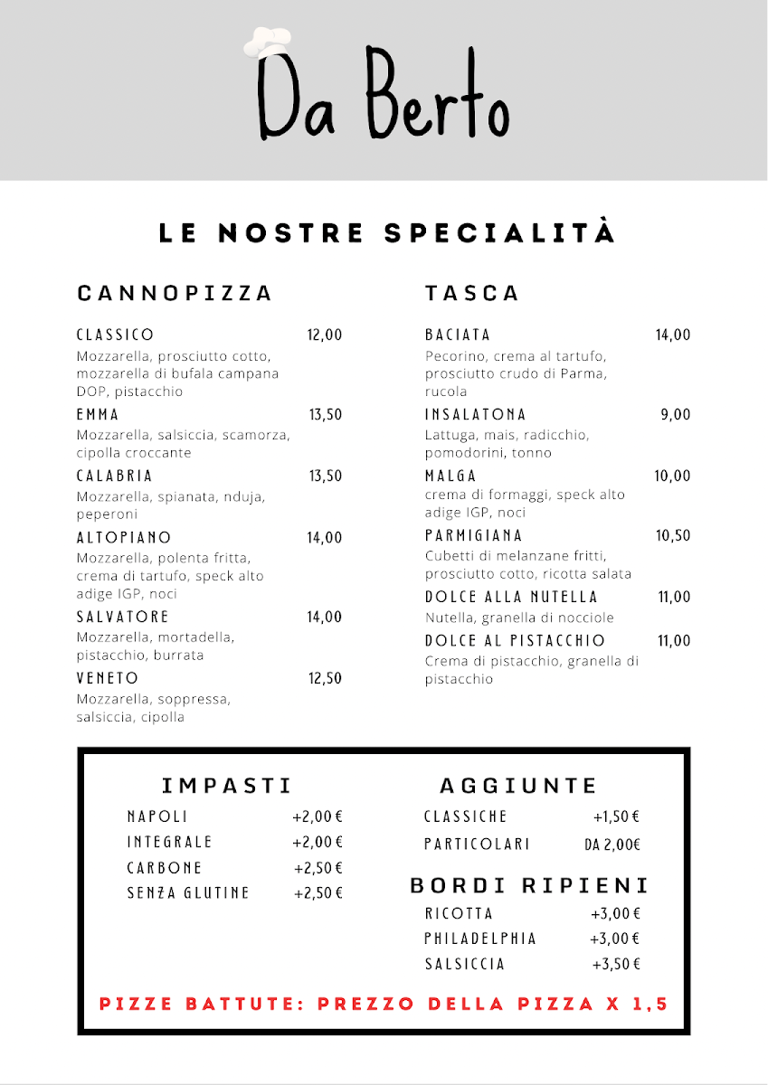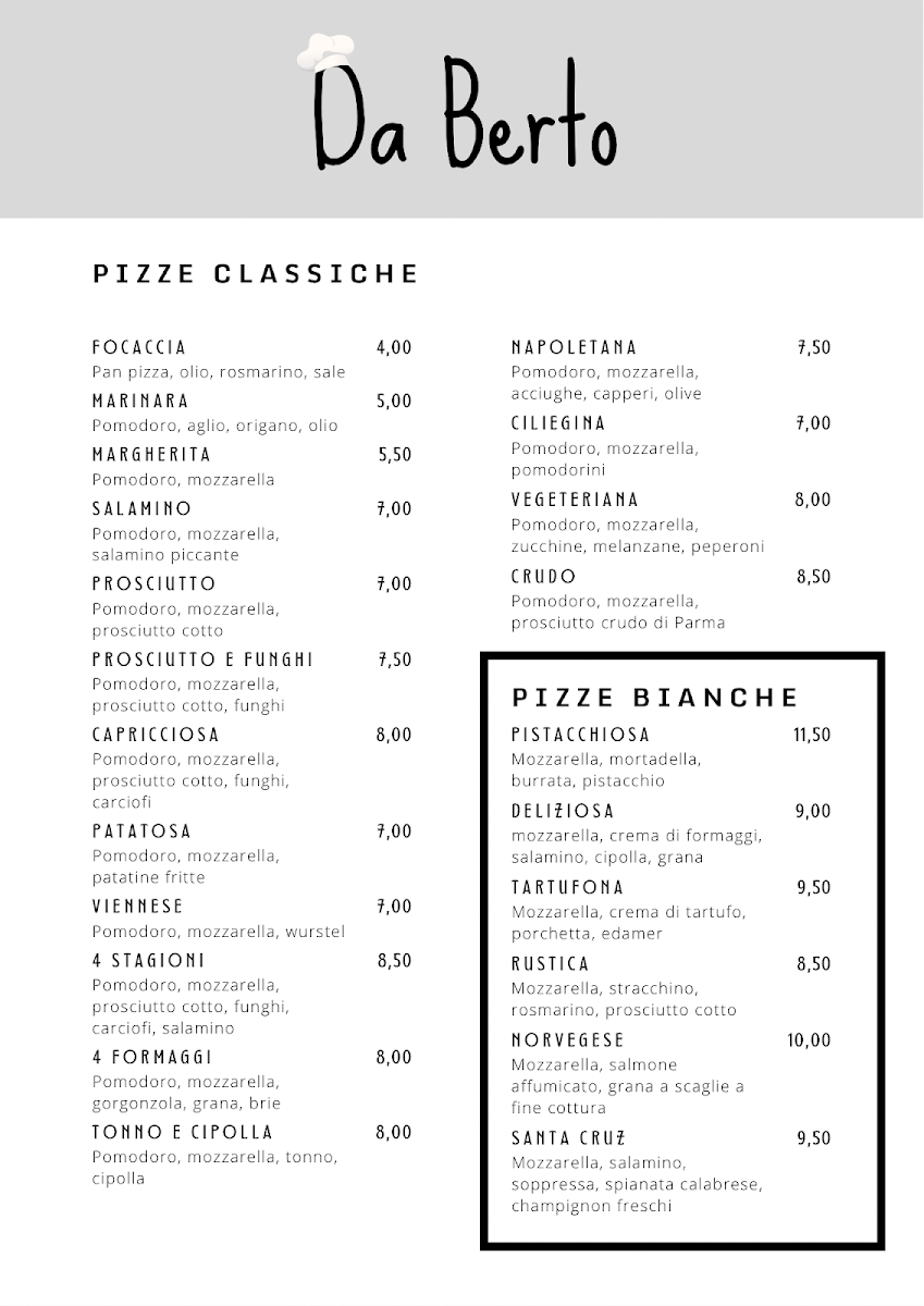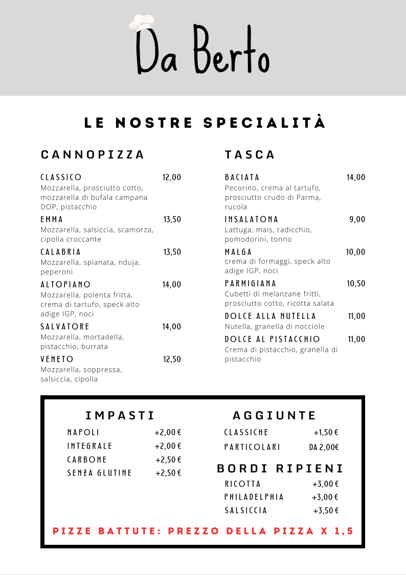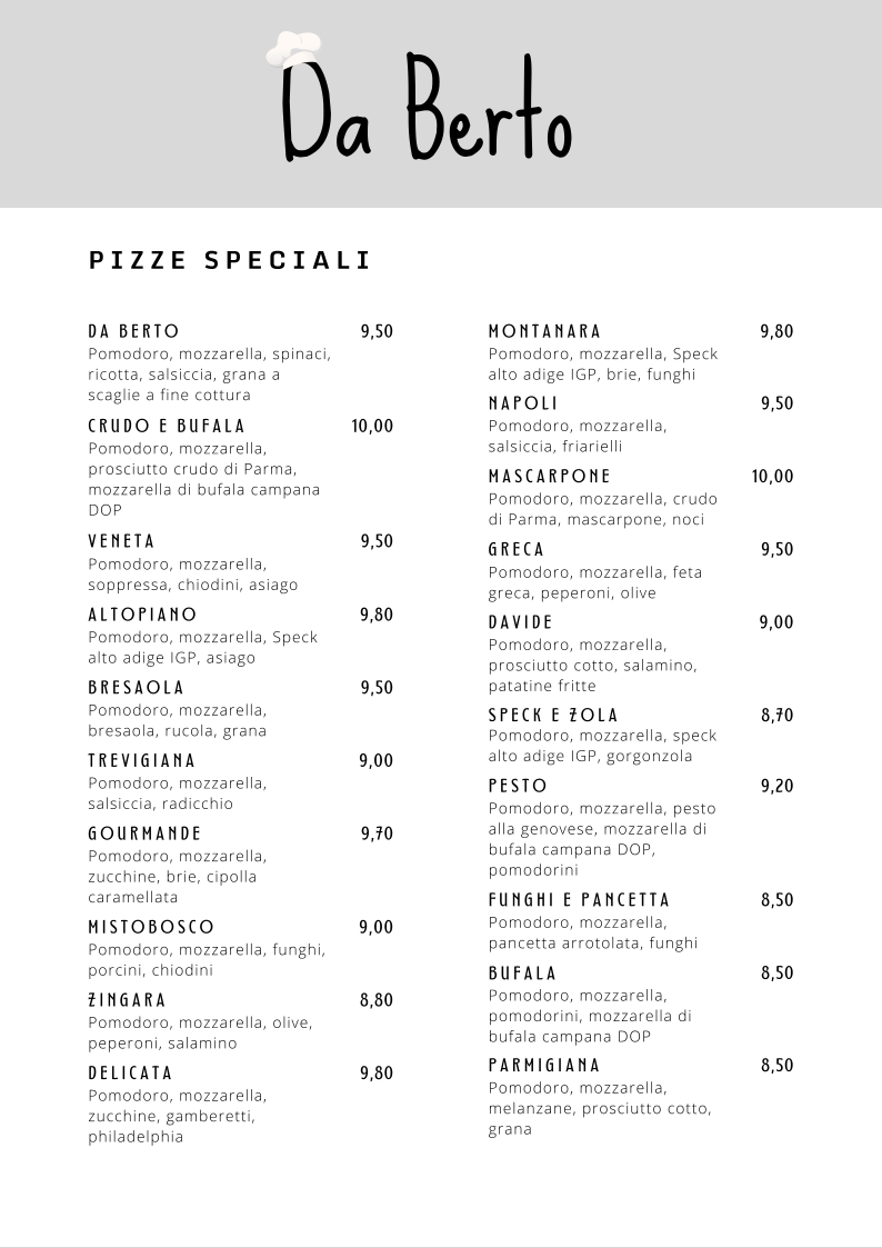 Introducing the Menu of Ristorante Pizzeria “Da Berto”